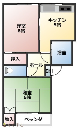| 間取り | 2DK (和室:6畳) (洋室:6) DK |