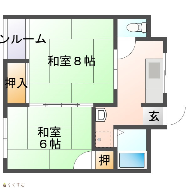| 間取り | 2K (和室:8畳、6畳) K3 |