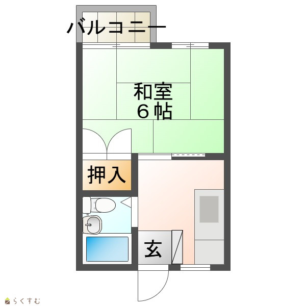 | 間取り | 1K (和室:6畳) 6帖和-K |