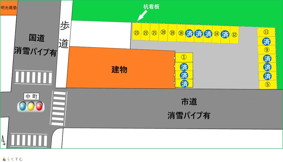 | 備考 | ¥3,000 1台/月(税込) 3月~12月 ¥2,000 1台/月(税込) 1月~12月 ※1月~2月の冬季期間のみ月額料金から¥1,000値引き致します。 最新の空き状況はお問い合わせください |