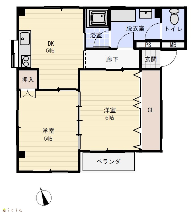 | 間取り | 2DK (洋室:6、6) DK5.8 |