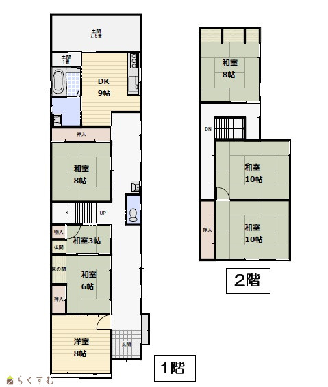 | 間取り | 7DK (和室:10畳、10畳、8畳、8畳、6畳、3畳) (洋室:8) DK9 |
