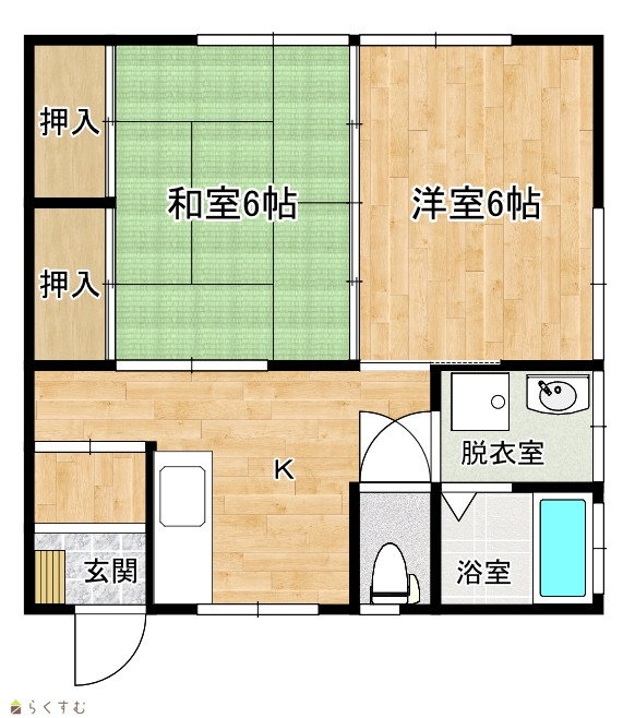 | 間取り | 2K (和室:6畳) (洋室:6) K |
