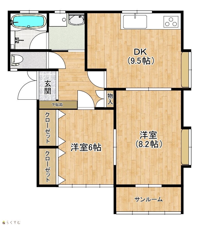 | 間取り | 2DK (洋室:8.2、6) DK9.5 |