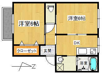 | 間取り | 2DK (洋室:6.0、6.0) DK |
