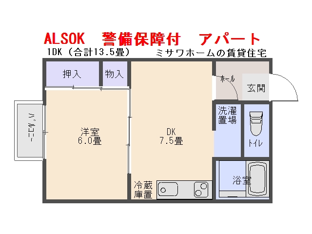 | 間取り | 1DK (洋室:6) DK7.5 |