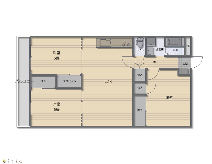 | 間取り | 3LDK (洋室:6、6、7.5) | ||