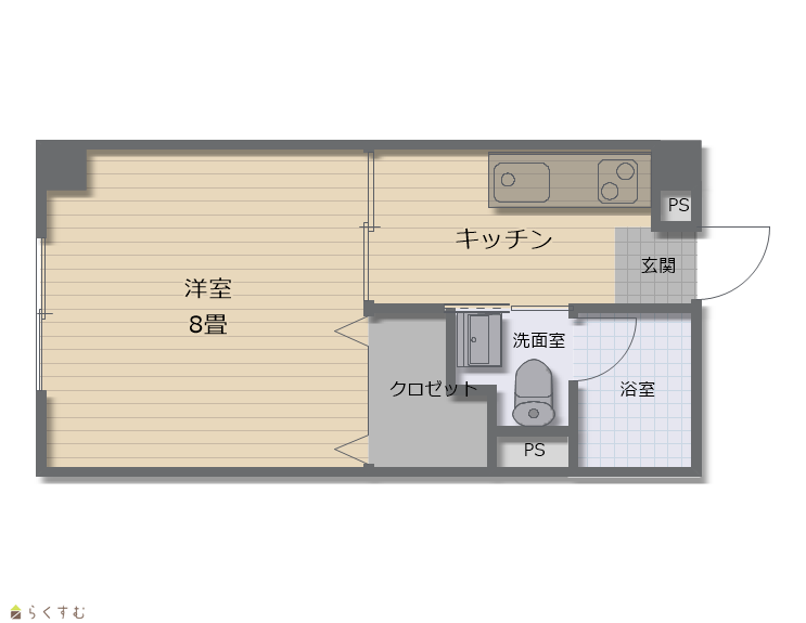 | 間取り | 1K (洋室:8.5) | ||