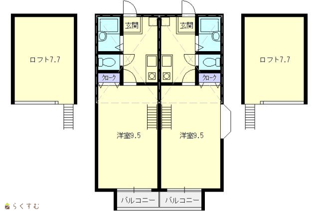 | 備考 | インターネット・Wi-Fi無料仲介手数料無料1年未満解約の場合、賃料2ヶ月分の違約金発生 賃貸保証料:月額総賃料60%(初回)☆広々とした7.7帖のロフト付き 更新手数料 0円 | ||