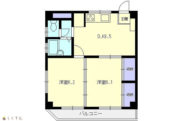 | 間取り | 2DK (洋室:6.2、6.1) | ||