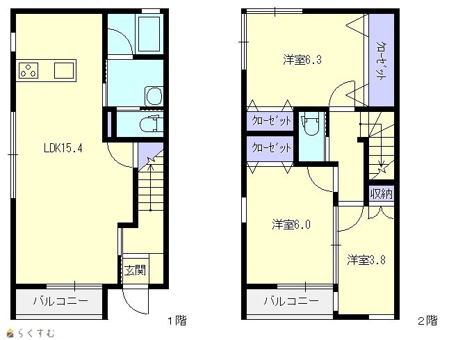 | 間取り | 3LDK (洋室:6.3、6.0、3.8) | ||