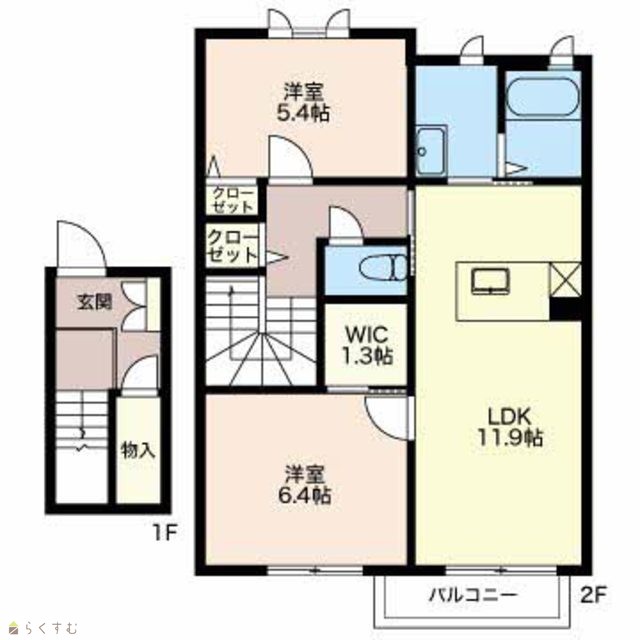 | 間取り | 2LDK (洋室:6.4、5.4) | ||