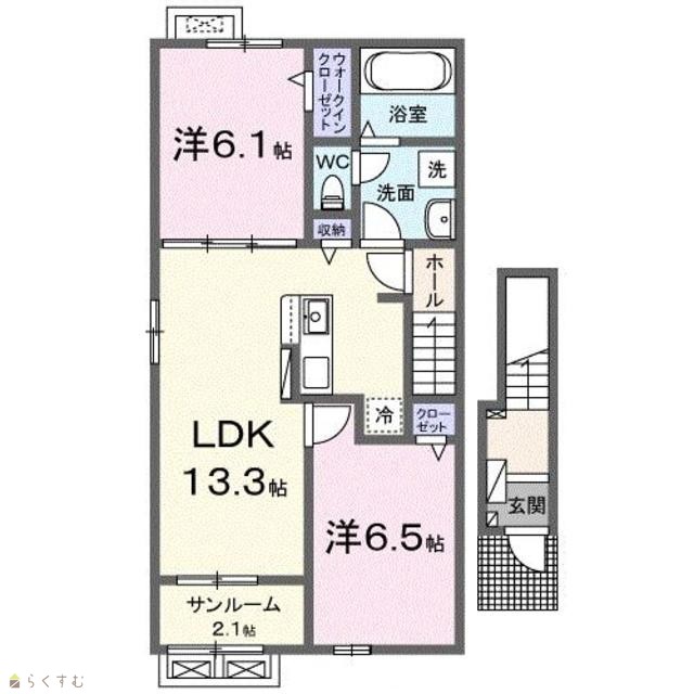 | 間取り | 2LDK (洋室:6.5、6.1) | ||