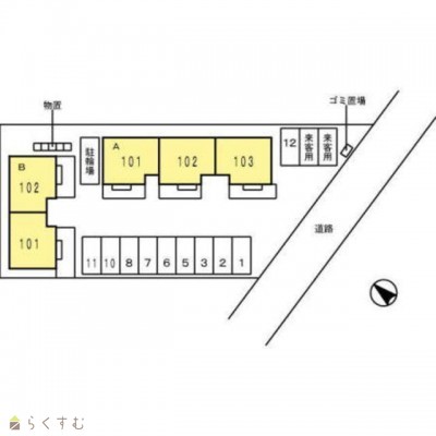 | 所在階/階数 | 1階/2階 | 号室 | 101号室 |