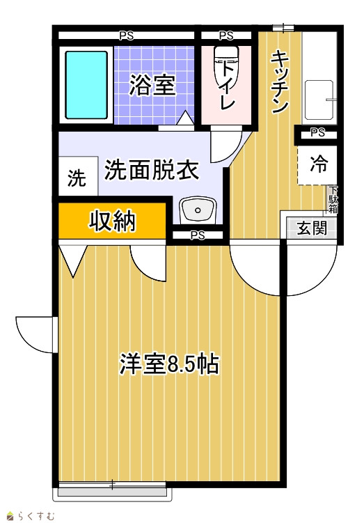 | 間取り | 1K (洋室:8.5) | ||