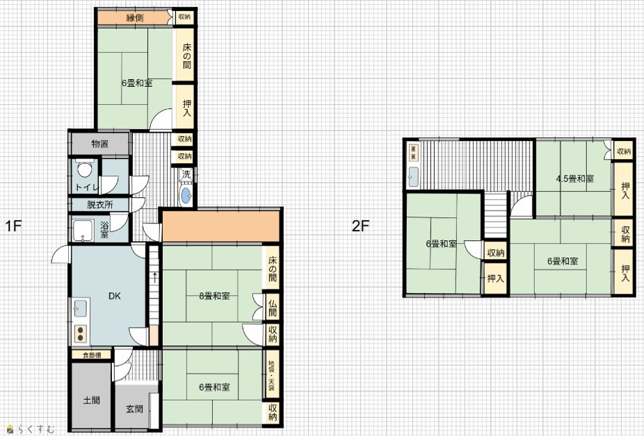 | 間取り | 6DK (和室:6畳、6畳、8畳、6畳、6畳、4.5畳) | ||