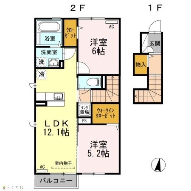 | 間取り | 2LDK (洋室:6、5.2) | ||