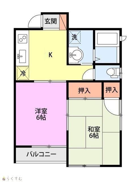 | 間取り | 2K (和室:6畳) (洋室:6) | ||