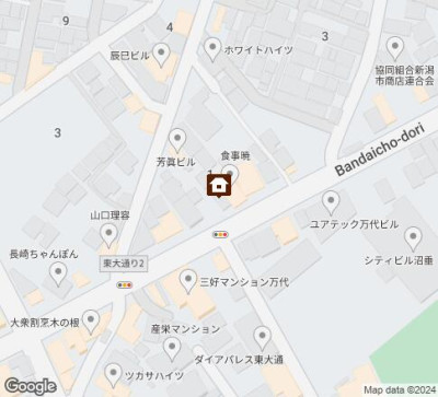 | 交通 | 駅:越後線 新潟駅から徒歩10分、バス:万代町から徒歩1分 | ||
