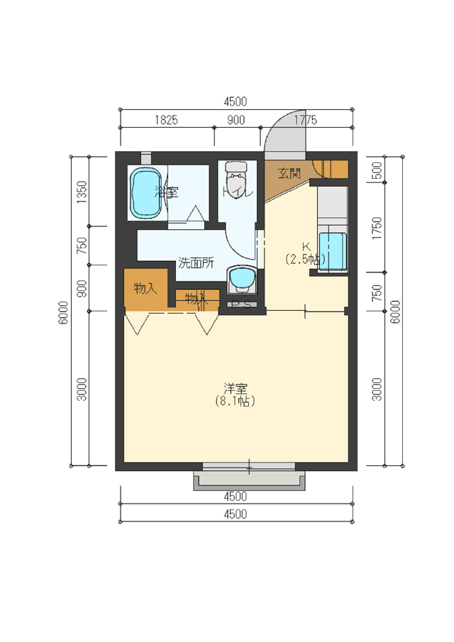 | 間取り | 1K (洋室:8.1) K2.5 |
