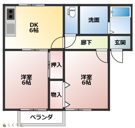 | 間取り | 2DK (洋室:6、6) | ||