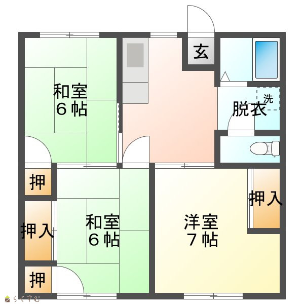 | 間取り | 3DK (和室:6畳、6畳) (洋室:7) DK6 |