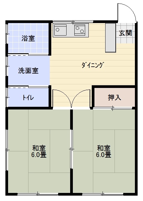| 間取り | 2DK (和室:6畳、6畳) DK6.5 |