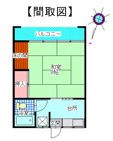 | 間取り | 1K (和室:8畳) | ||