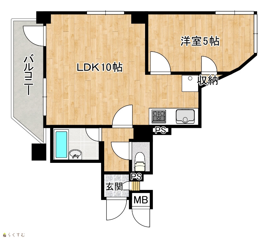 | 間取り | 1LDK (洋室:5) LDK10帖 |