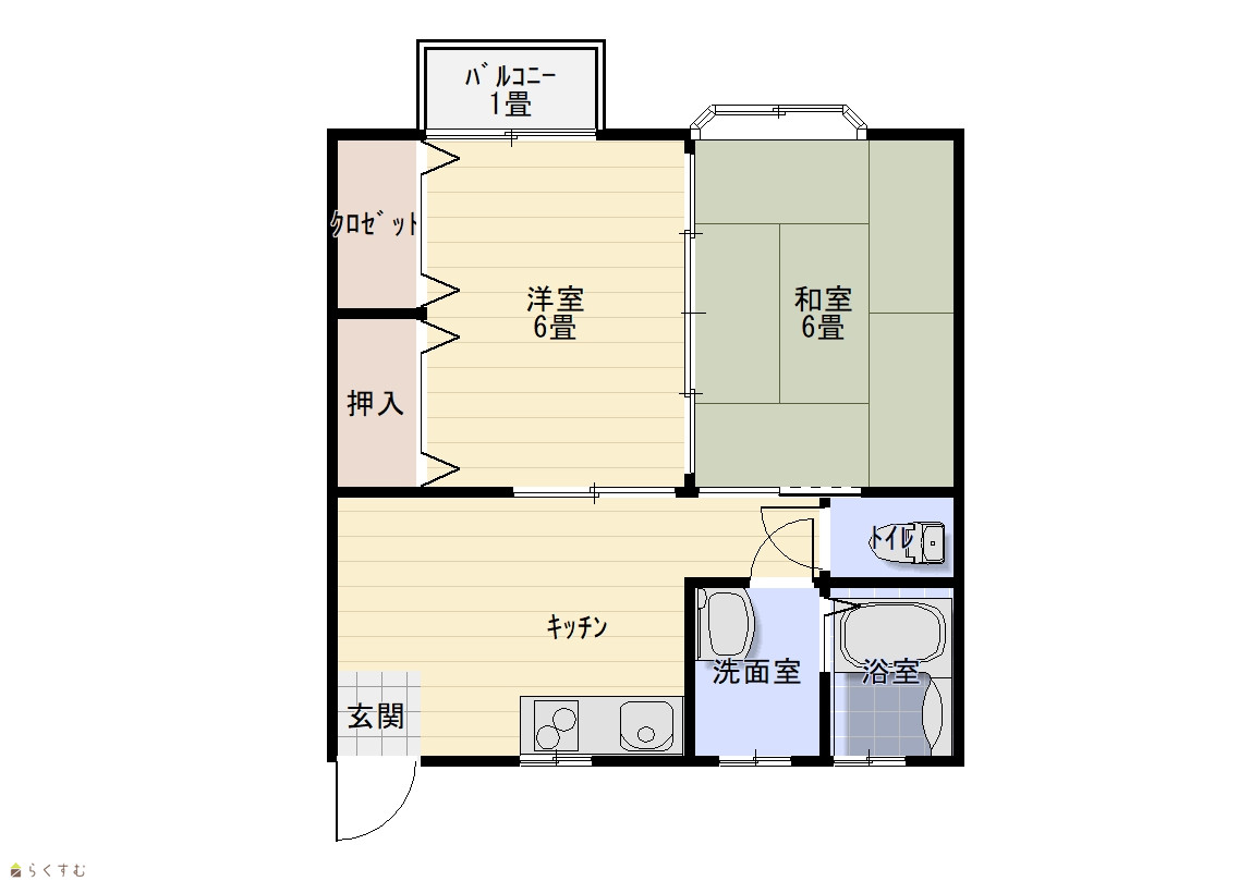 間取り 2DK (和室:6畳) (洋室:6)