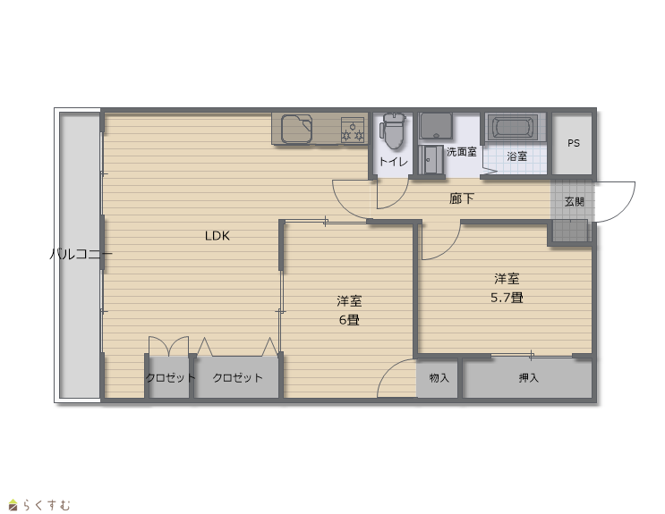 | 間取り | 2LDK (洋室:6、5.7) LDK15 |