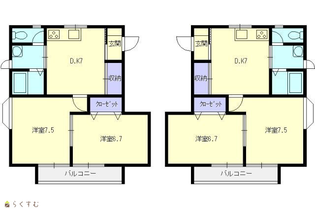 | 間取り | 2DK (和室:6.7畳) (洋室:7.5) | ||