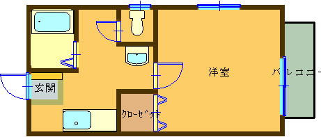 間取り 1K (洋室:8)