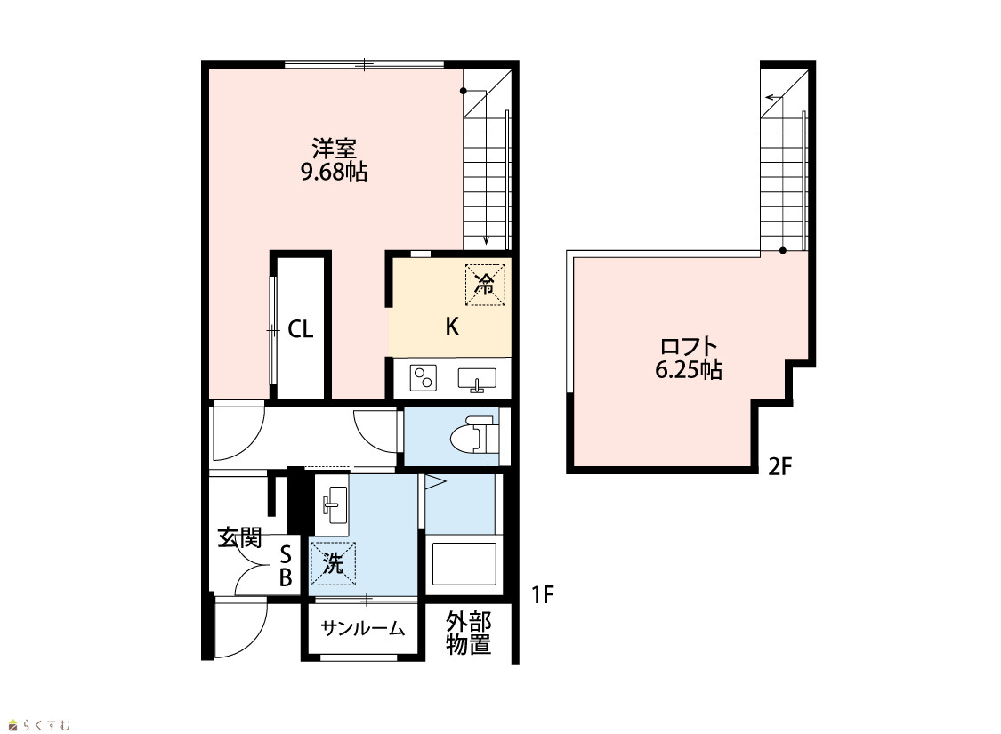 | 間取り | 1K (洋室:9.68) ロフト6.25 |
