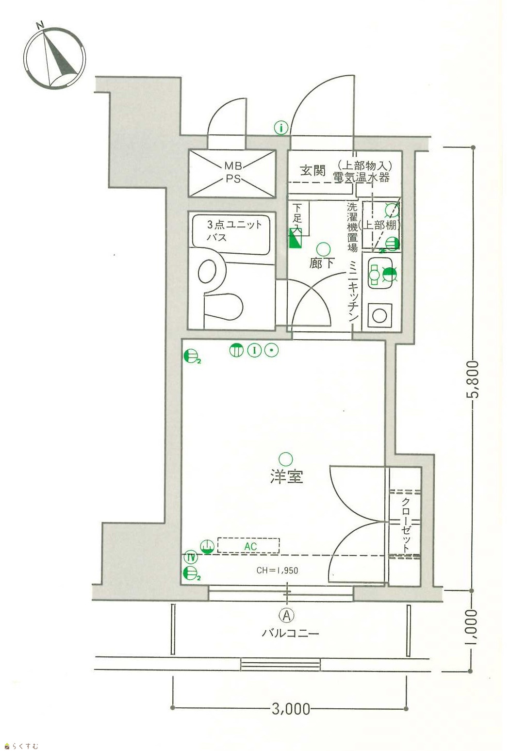 | 間取り | 1K (洋室:5.8) | ||