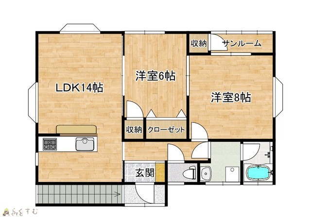 | 間取り | 2LDK (洋室:8、6) | ||
