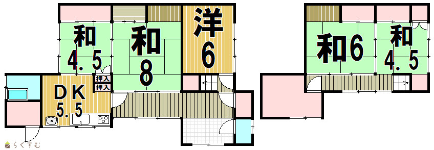 | 間取り | 5DK (和室:4.5畳、4.5畳、6畳、8畳) (洋室:6) | ||