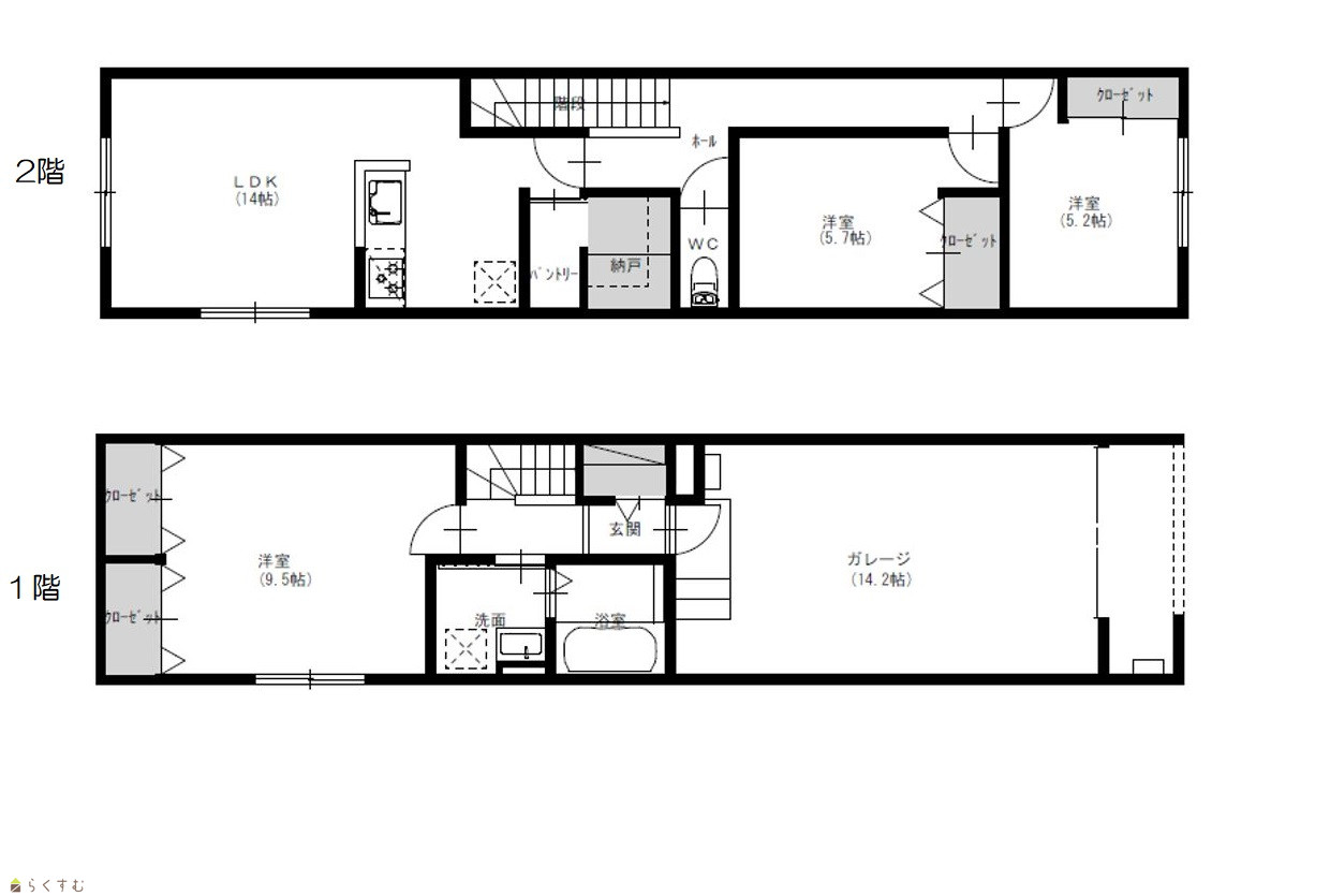 | 間取り | 3LDK (洋室:9.5、5.7、5.2) LDK14 |