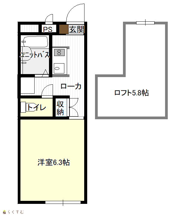 | 間取り | 1K (洋室:6.3) ロフト5.8 |