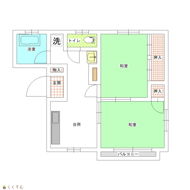 | 間取り | 2DK (和室:6畳、6畳) | ||
