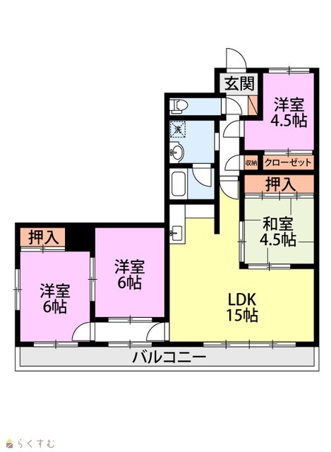 | 間取り | 4LDK (和室:4.5畳) (洋室:4.5、6、6) | ||