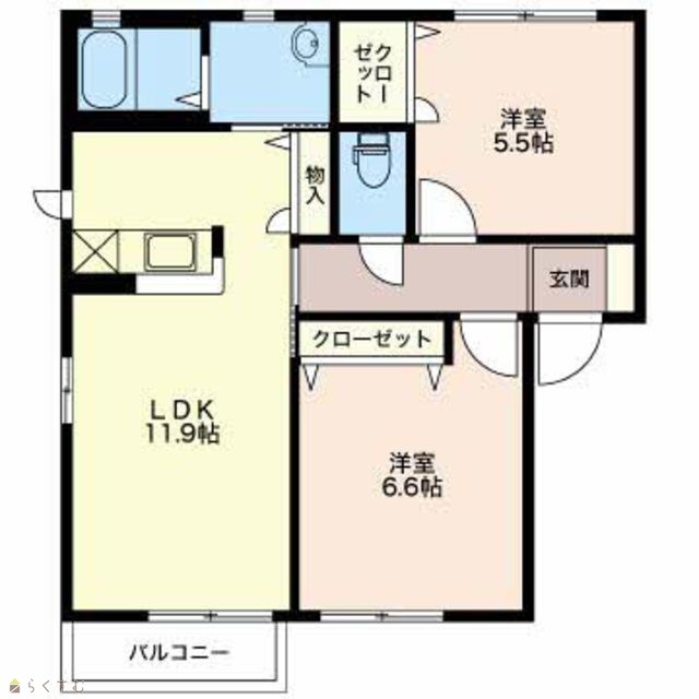 | 間取り | 2LDK (洋室:6.6、5.5) | ||
