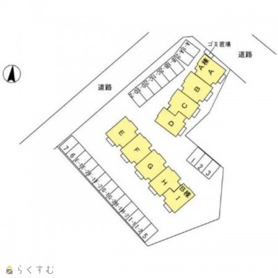 | 所在階/階数 | 1階/2階 | 号室 | H号室 |