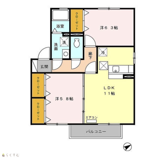 | 間取り | 2LDK (洋室:6.3、5.8) | ||