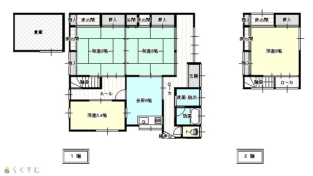 | 間取り | 4K (和室:8畳、8畳) (洋室:5.4、8) K6 |
