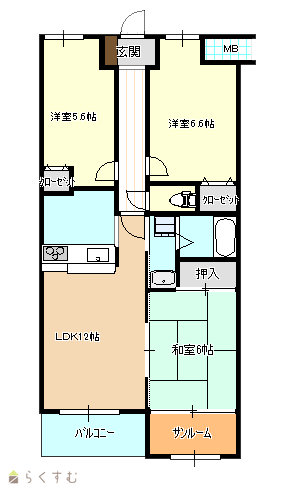 | 間取り | 3LDK (和室:6.0畳) (洋室:5.5、5.5) LDK12.0 |