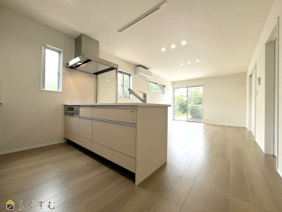 | 駐車場3台可能で余裕のある駐車スペース!キッチン脇にはパントリーがありますので、お米やペットボトル等ストック出来ます。 対面キッチンはリビングにいるご家族の様子を見ながら調理出来ますので、小さなお子様がいるご家族でも安心です。 | |||
