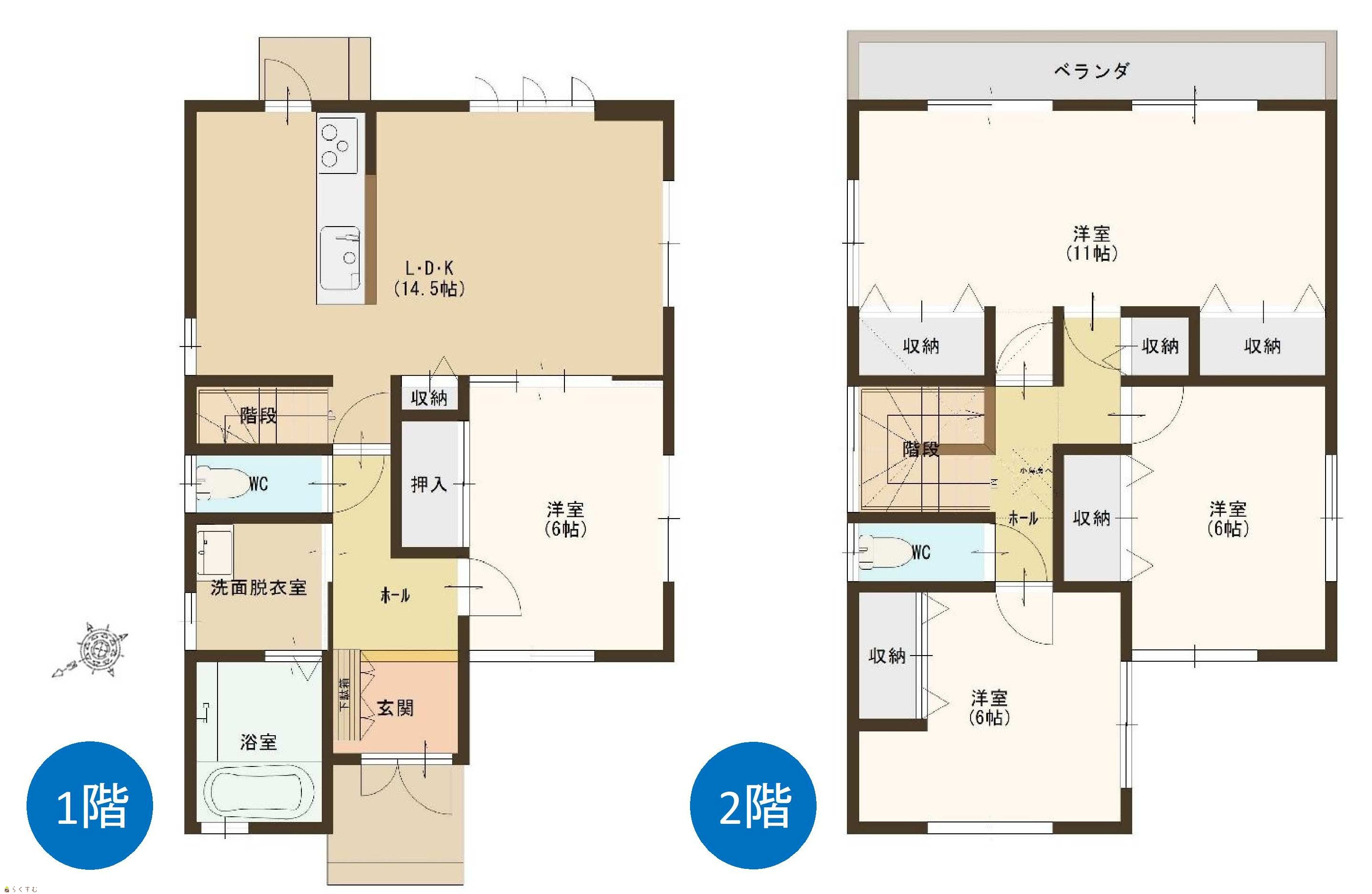 4LDK (洋室:11、6、6、6) LDK14.5 |