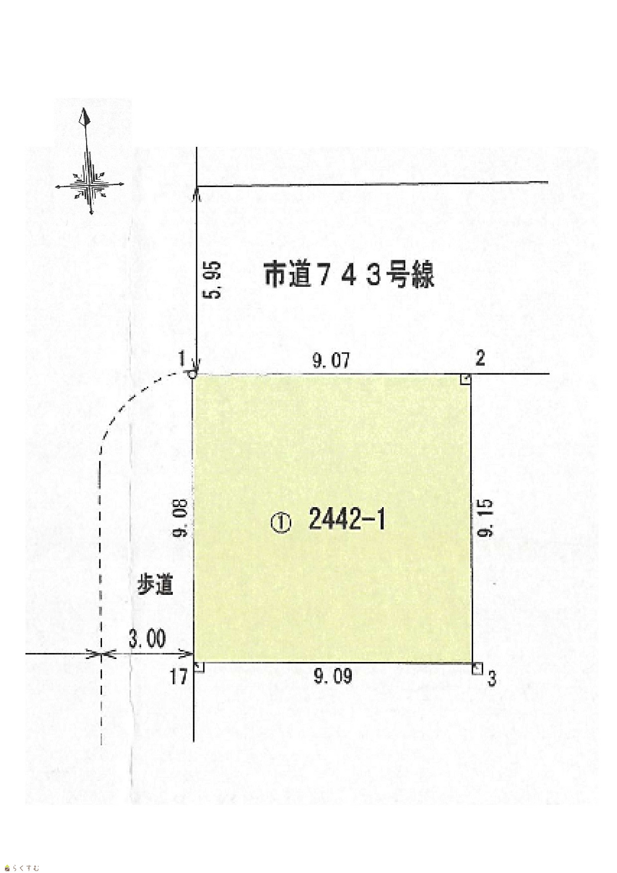 | 形状 | 間口 9m × 奥行 9m | 道路 | 東側市道15m、北側市道6m |