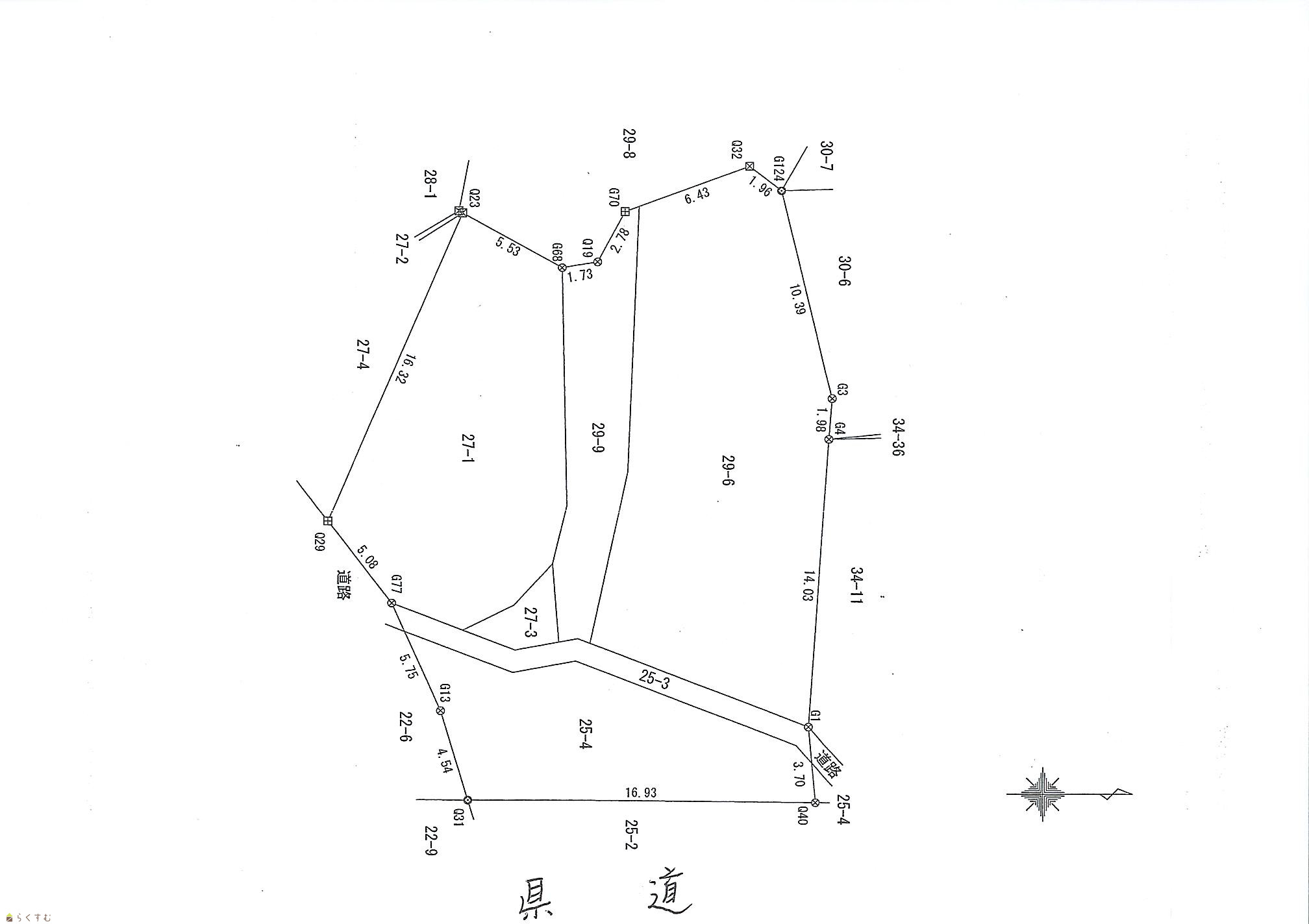 | 県道沿いの間口16.93mの角地! | |||